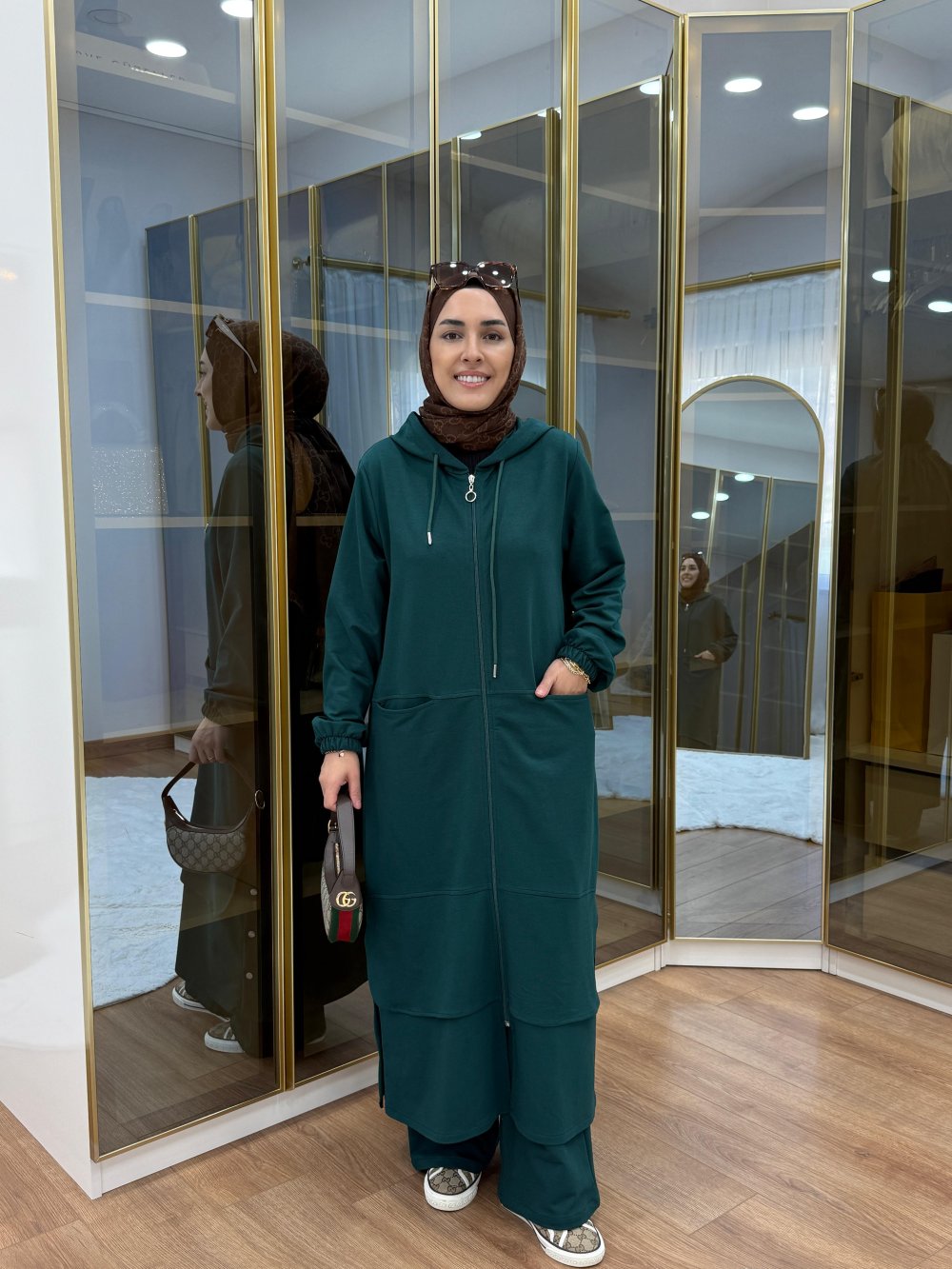 Aller Detaylı Kapüşonlu İkili Takım Zümrüt