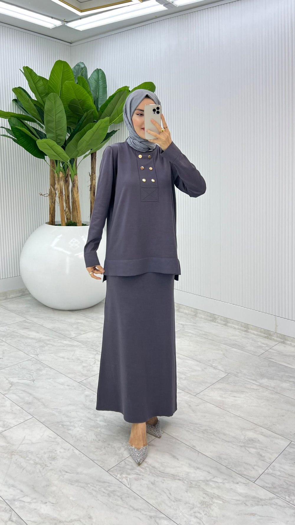Tunik ön kısımda gold aspirin düğme detaylıdır