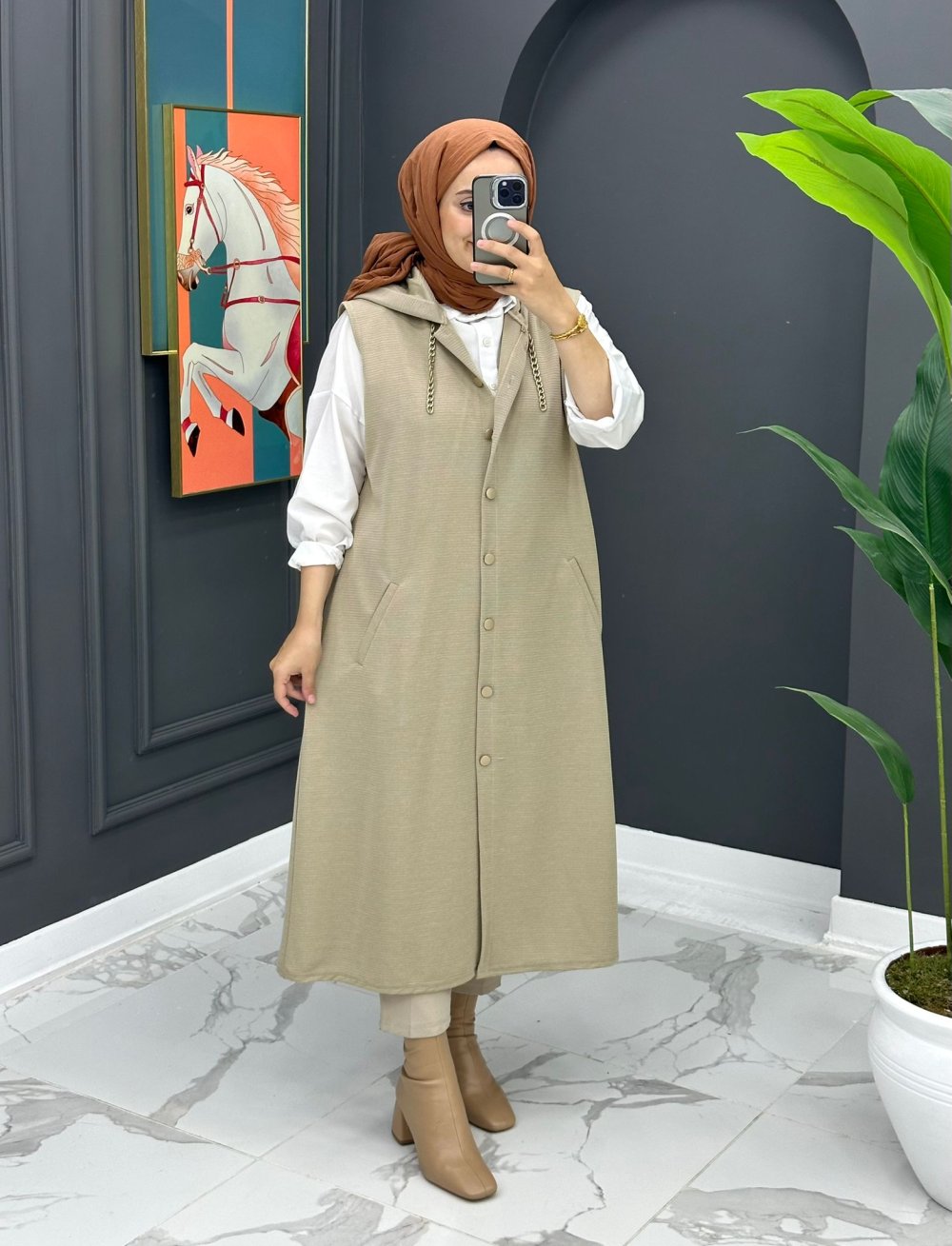 Aysel Uzun Yelek - Bej