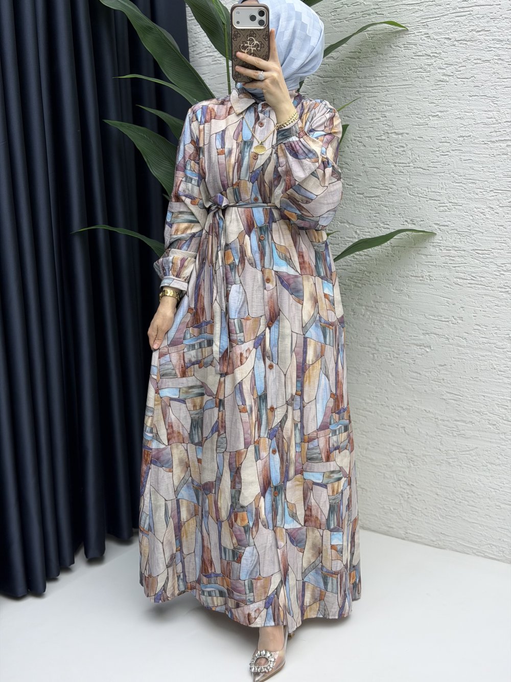 Boydan düğmeli giy çık elbisemiz en güzel deseniyle satışta