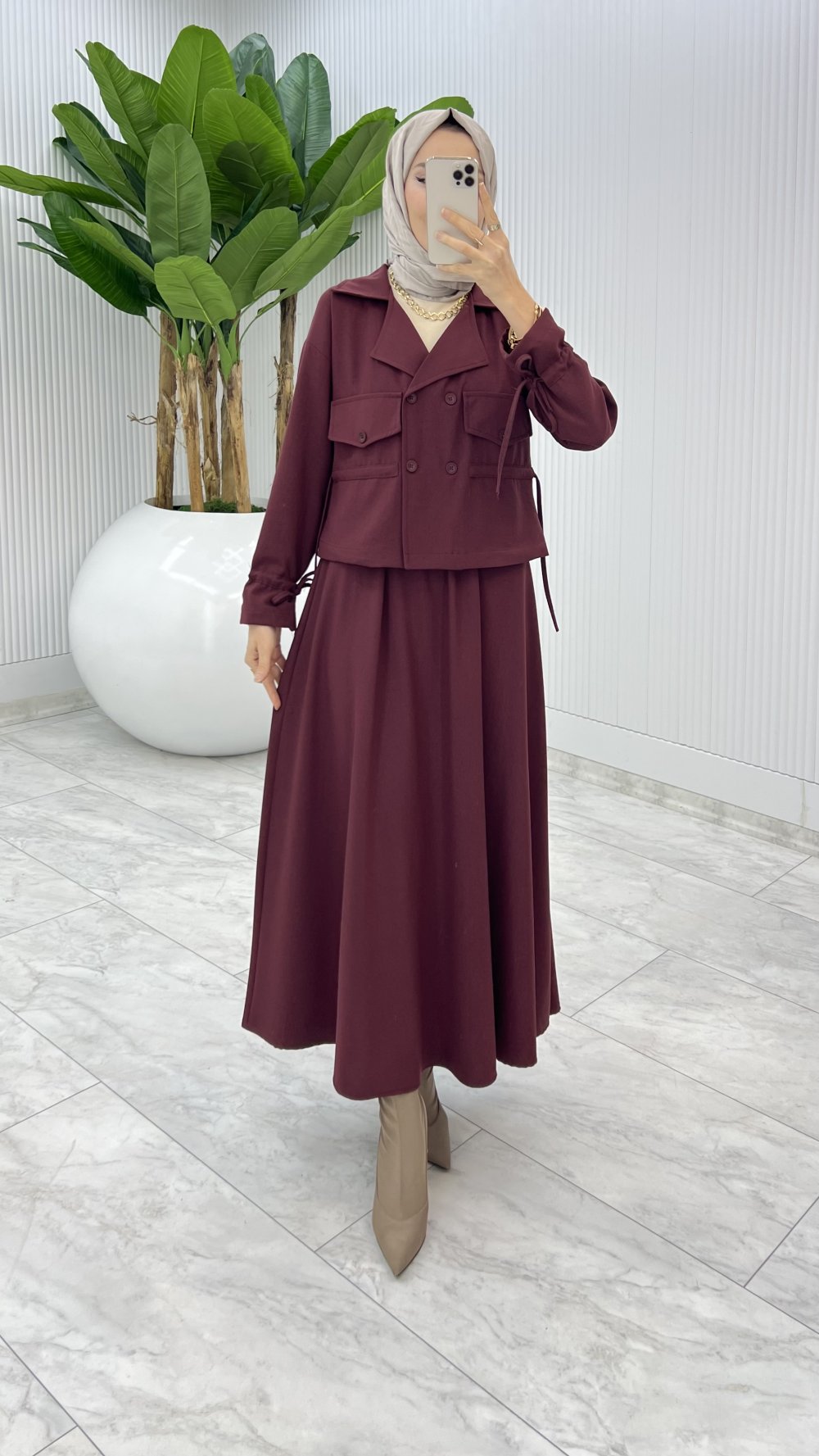 Bordo Delal Etek Takım Tesettür Giyim