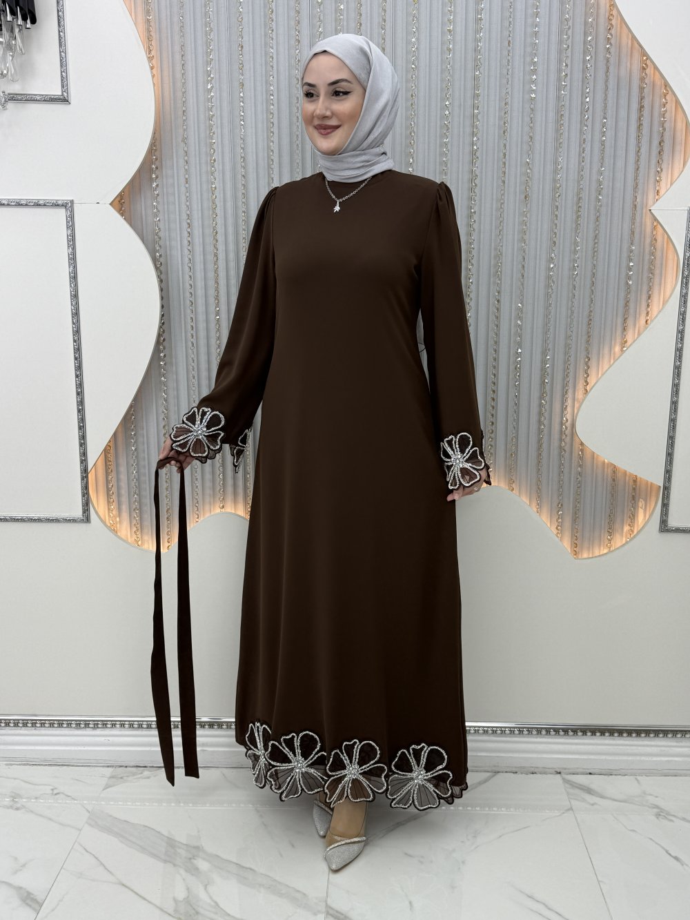 Çiçek Abiye Kahverengi