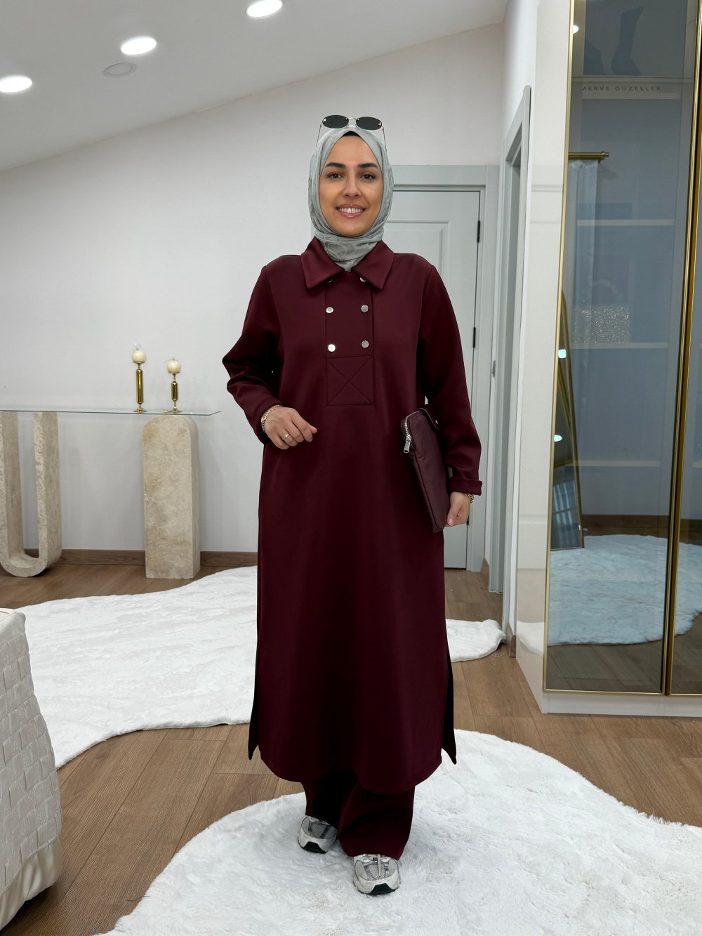 Çıtçıtlı Detaylı Maksi Boy Scuba Takım Bordo