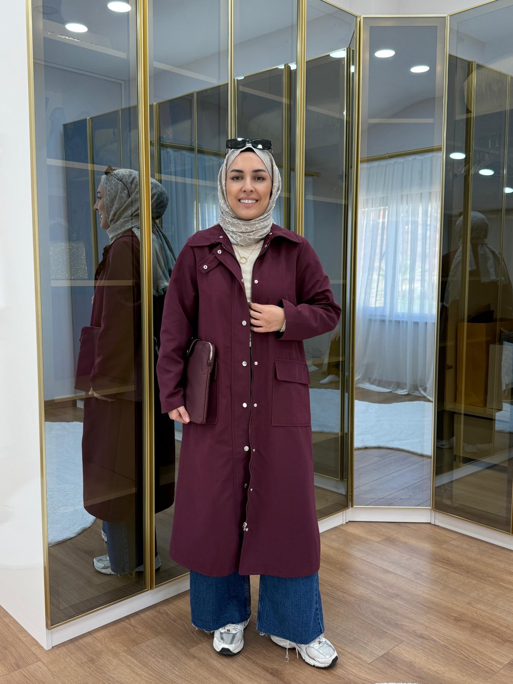 Çıtçıtlı Detaylı Parka Trençkot Bordo