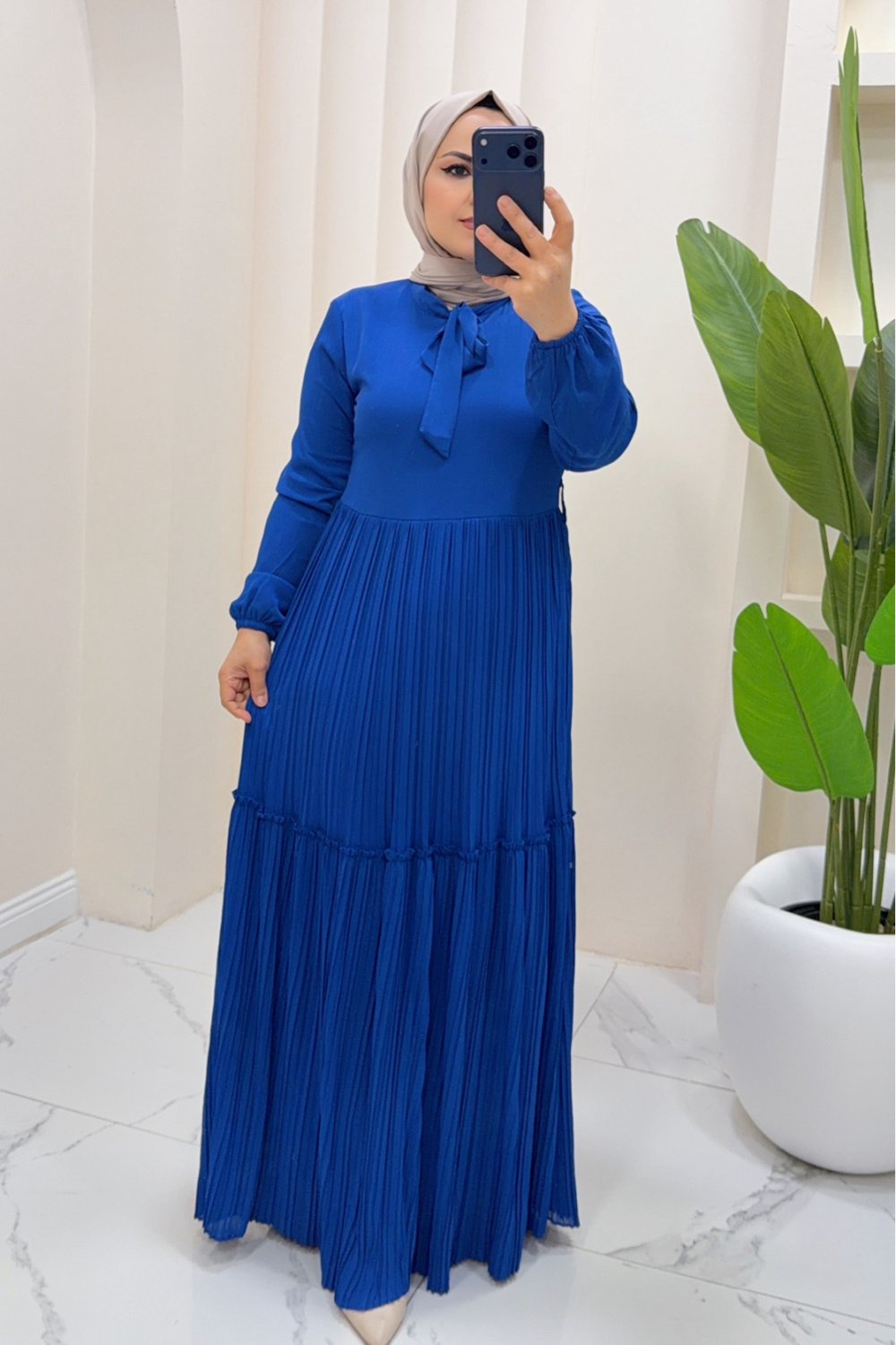 Elnise şifon Esmira Saks Mavisi