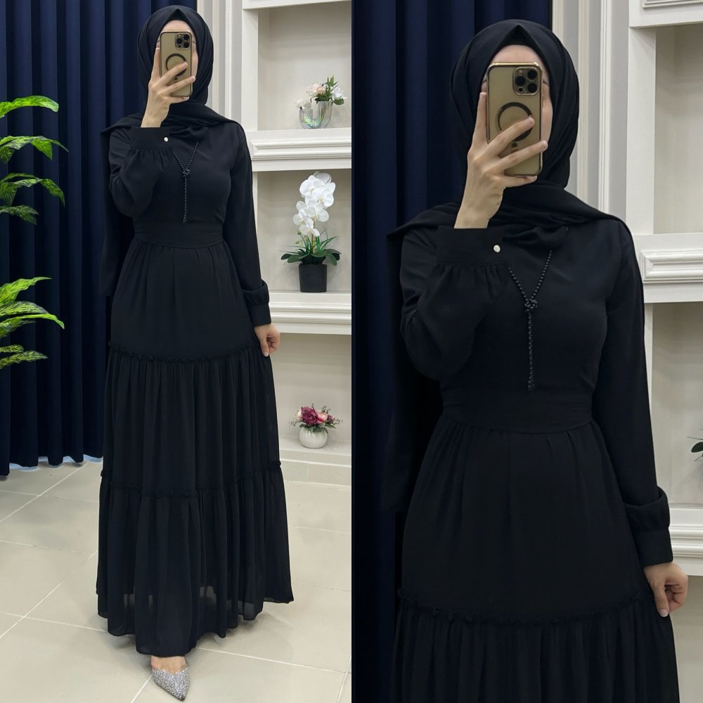 ElzemTesettur Şifon Elbise Kod 13072 Beden 38 40 42 44 46 beden aralığı Boy 143.145cm 1.sınıf Şifon kumaş Komple astarlıdır Beli kemerli
