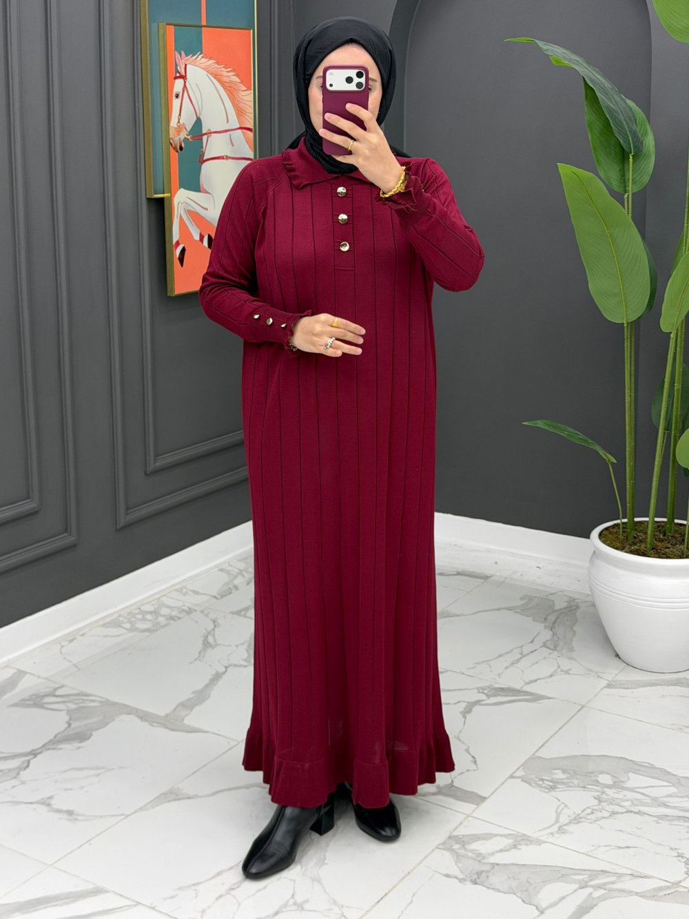 Esengül Triko Elbise - Bordo