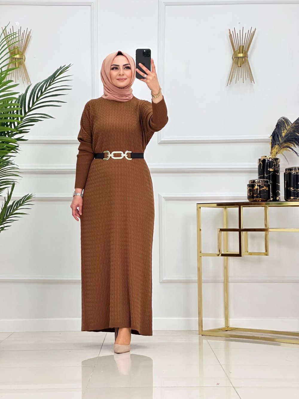 ESİLA TRİKO ELBİSE-SÜTLÜ KAHVE