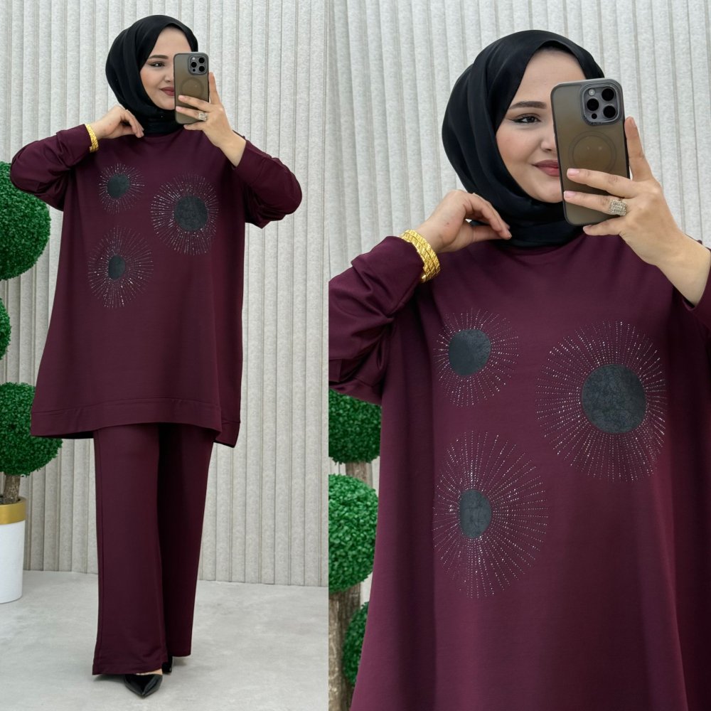 ? 3 beden Göğüs 74 cm Tunik Basen 80 cm Pazu 26 cm Pantolon Bel açık 72 cm
