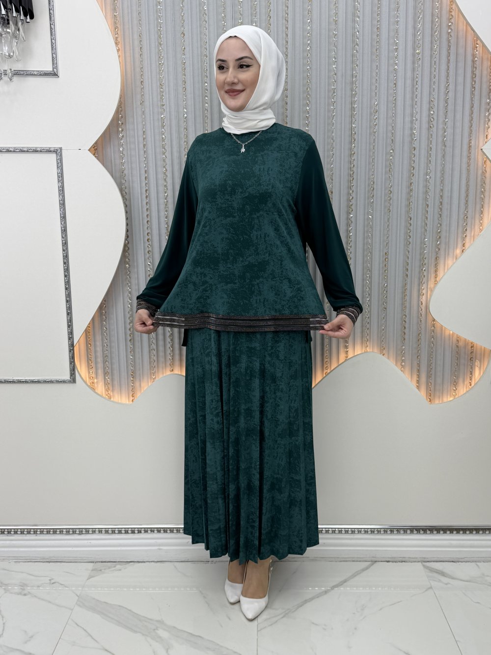 Tunik Etek ucu taş detaylı