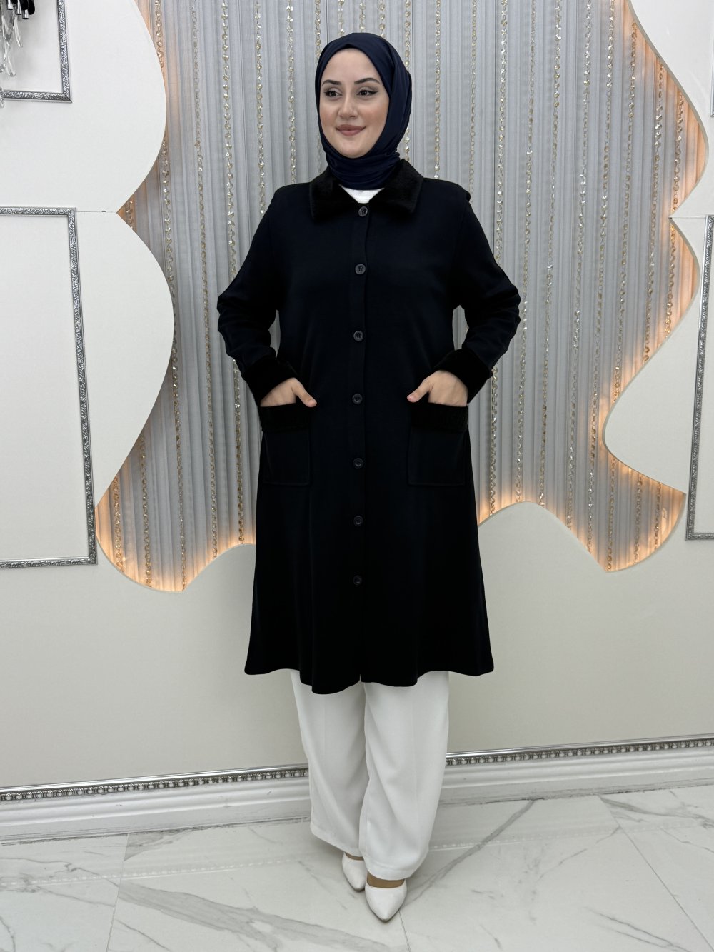 Yaka kürk detaylı