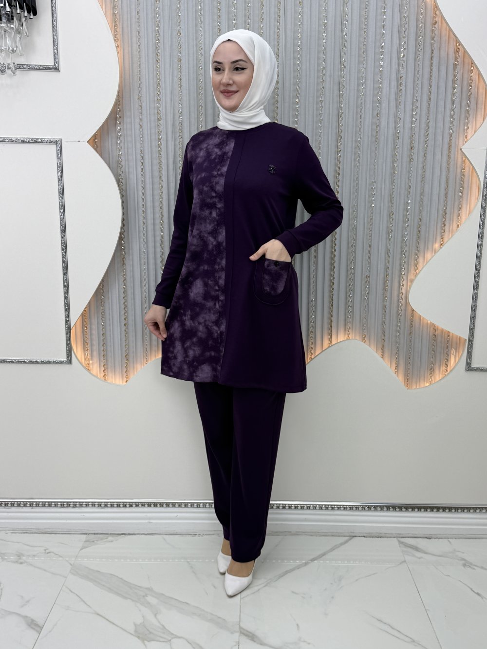 Gölge Pantolonlu Takım Mor