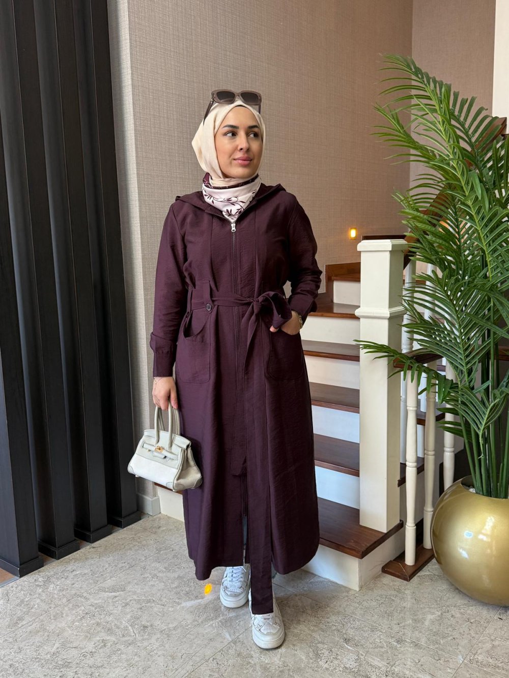 Kapüşonlu Cupra Kap Mürdüm