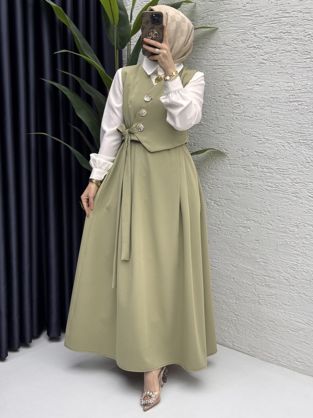Lalezar Etekli Takım Tesettür Giyim Açık Haki