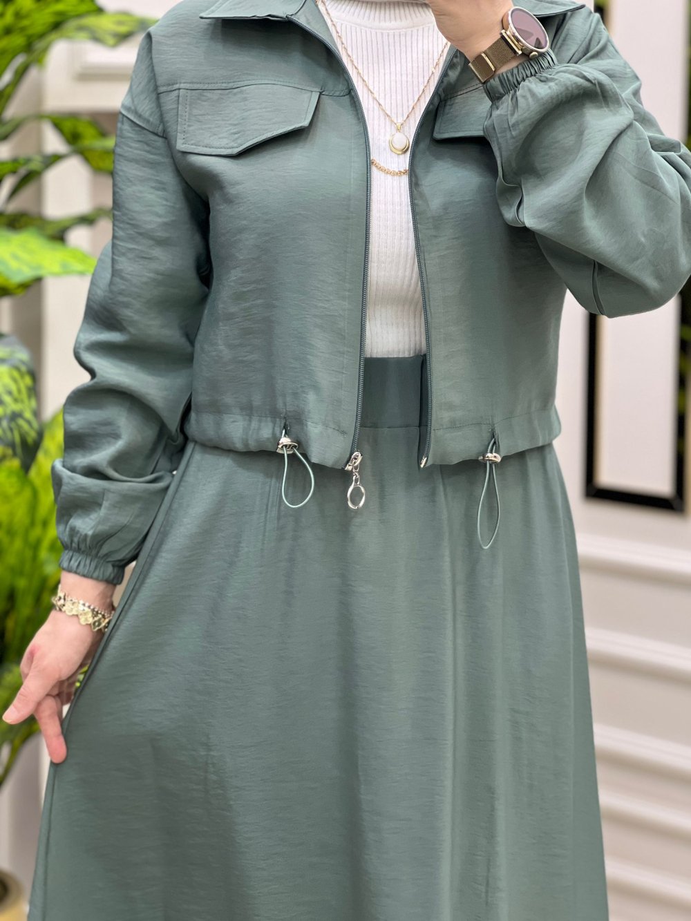 Bayramlik Ceket Etek Takım Şik ve zarif takımimiz Layla takım kod.13151 Ceket Beli ayarlanabilir şekilde lastikli Fiyat kargo ücretsiz Beden 38 40 42 44 Kumaş Türü:cupra tensel Ceket boy: 45.47 cm Etek boy: 90cm Etek beli lastiklidir