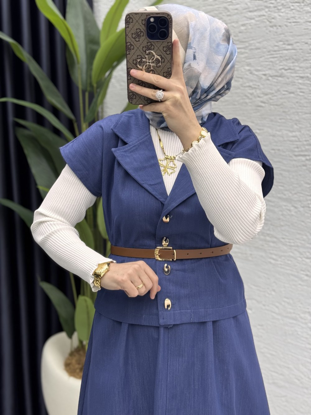 İster kemerli ister kemersiz kullanabileceğiniz etek yelek takımımız satışta