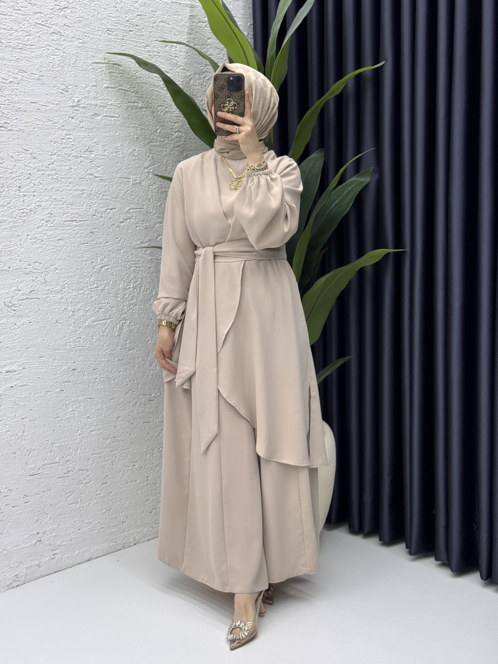 Mahinur Takım Tesettür Giyim Taş Rengi