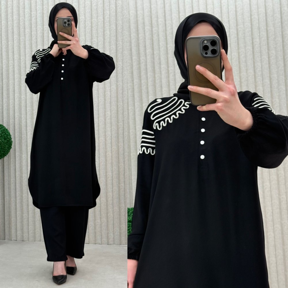 ?46 beden Göğüs 56 cm Tunik Basen 60 cm Pazu 21 cm Pantolon Bel açık 60 cm