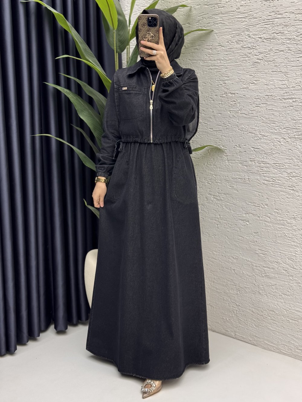 Merve Kot Elbise Tesettür Giyim Antrasit