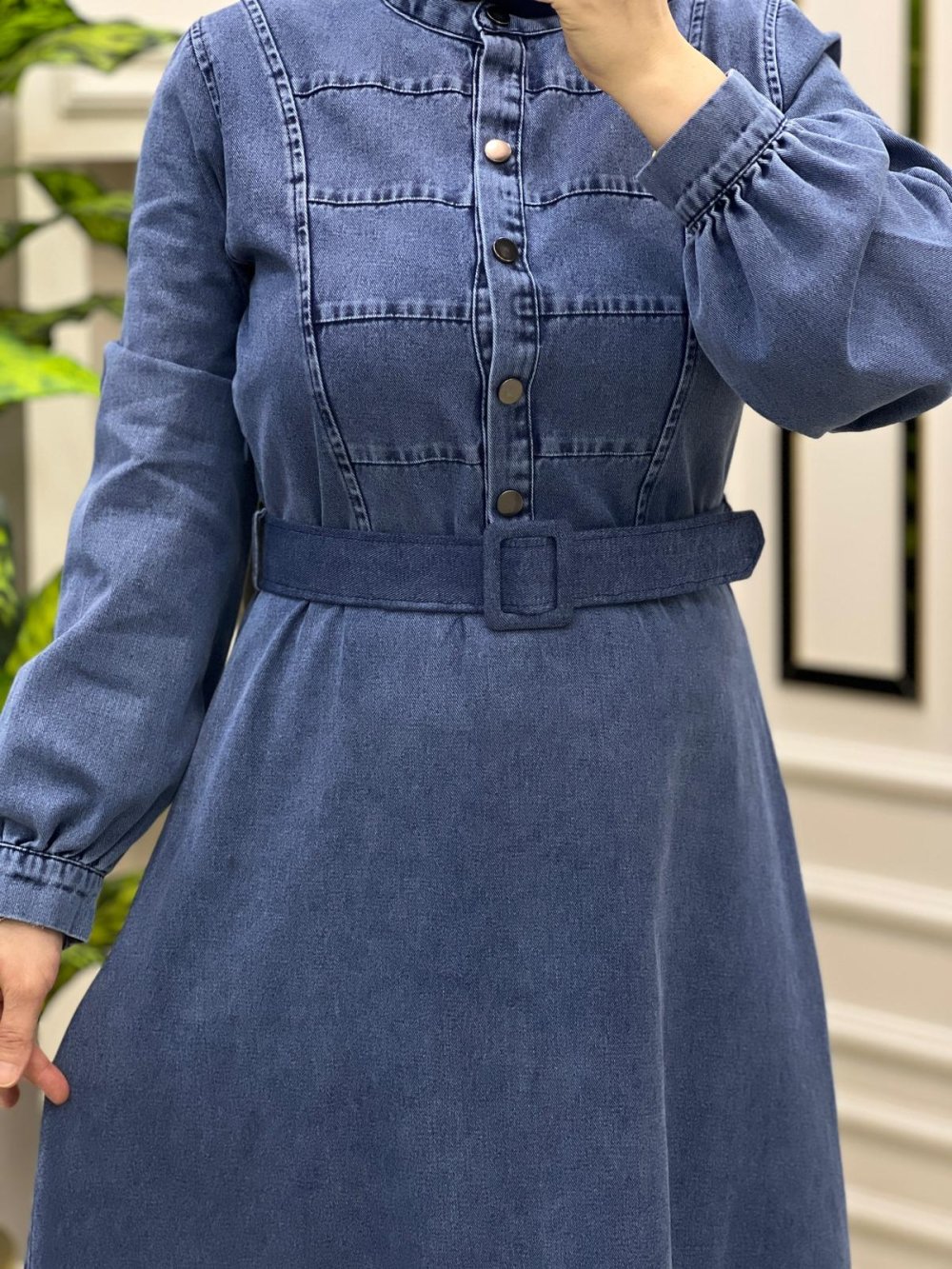 Bayramlik Kot Elbise kod.13155 Elbıse önü citcit düğmeli Fiyat kargo ücretsiz Beden 38 40 42 44 46 Kumaş Türü:yumuşak kot Elbıse boy:135.137cm Beli kemerli