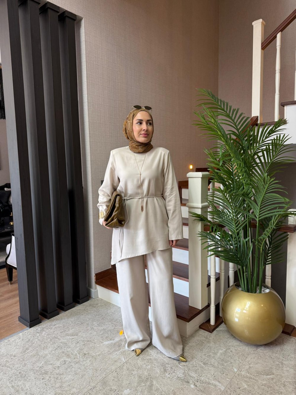 DOĞAL KUMAŞ VE ASİMETRİK DETAYIYLA TAMAMLANAN MYRA TAKIM ?