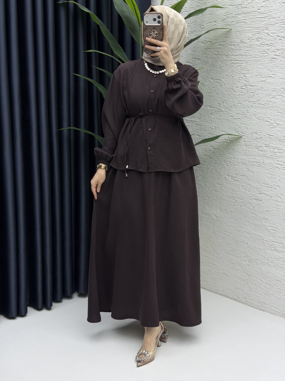 Nagehan Etekli Takım Tesettür Giyim Kahve