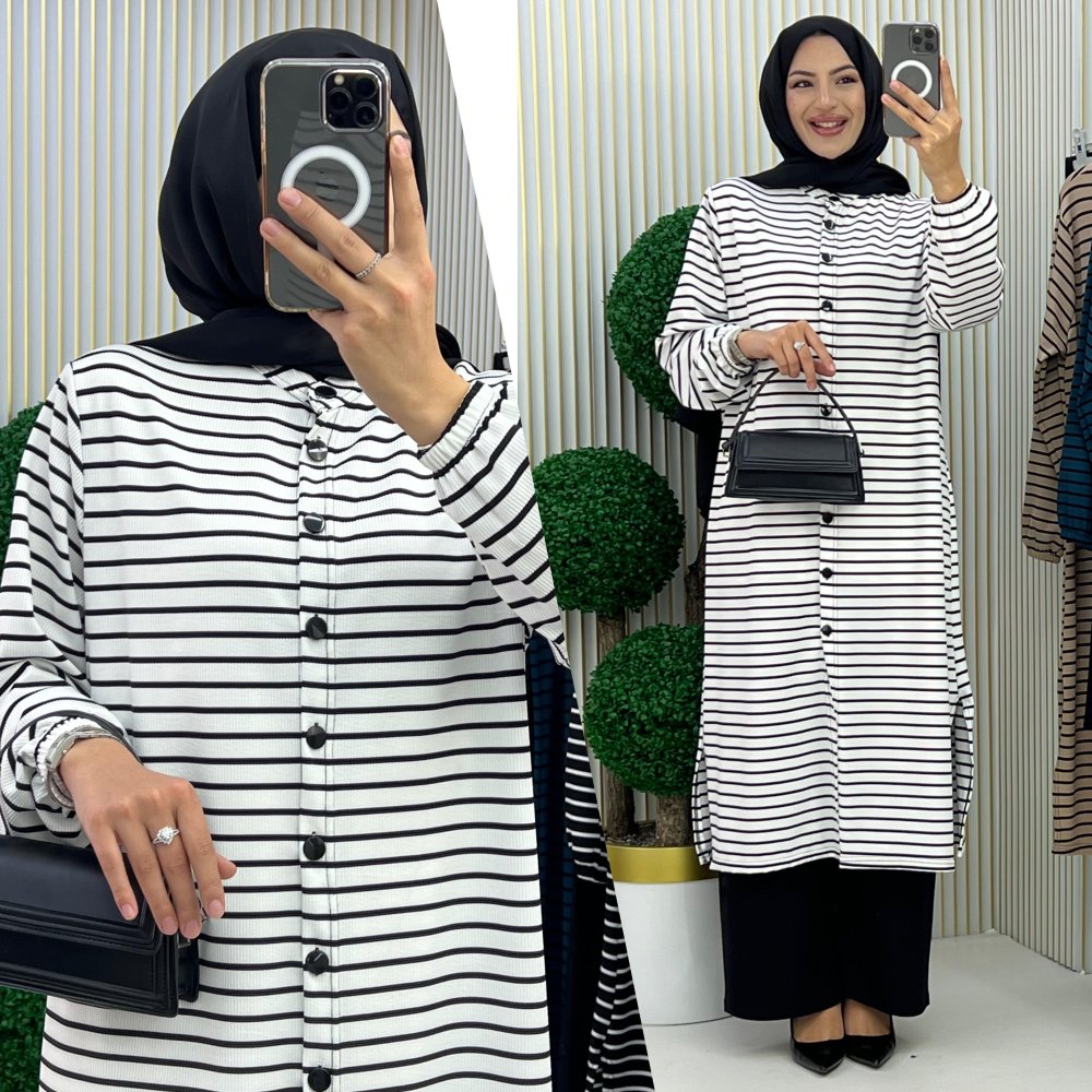 Örme kumaş boydan düğmeli kollar lastikli