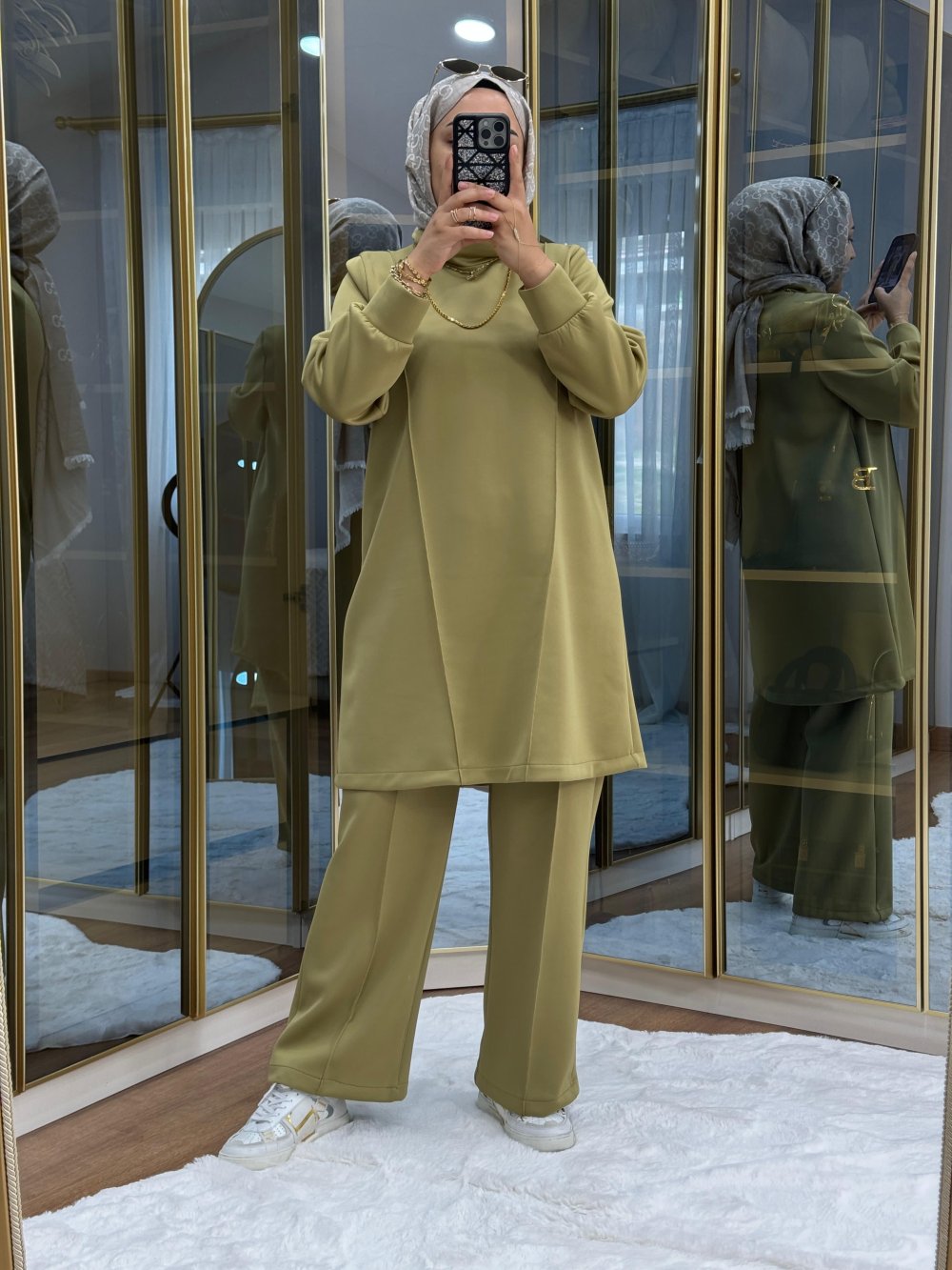 Tunik ve pantolon önü dikiş detaylıdır.