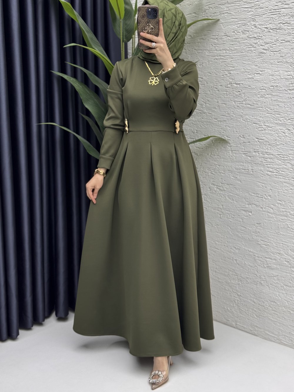Piraye Elbise Tesettür Giyim Haki