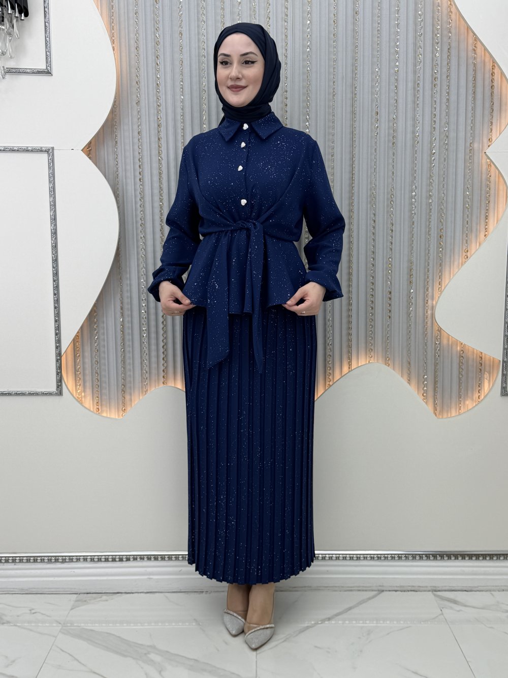 Pırıltı Etekli Takım Lacivert