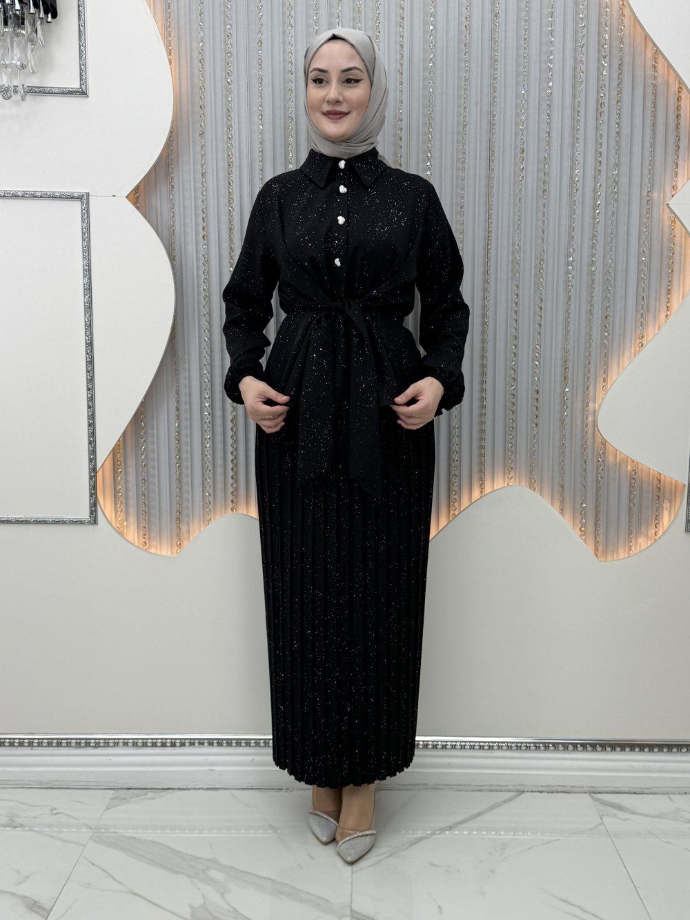 Pırıltı Etekli Takım Siyah