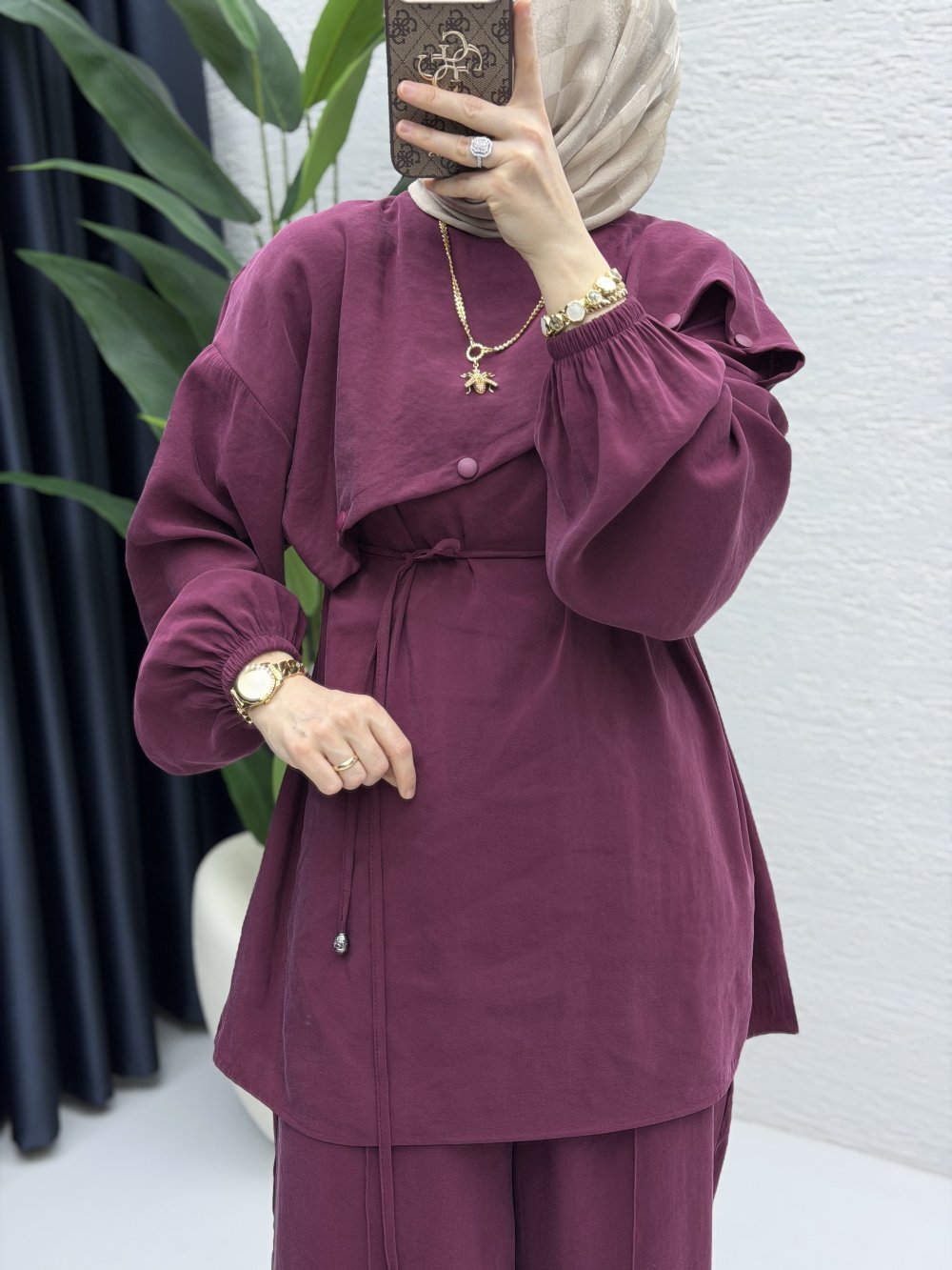 Rezzan Pantalonlu Takım Tesettür Giyim Vişne