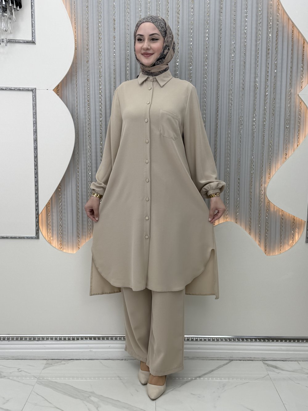 Rozalin Pantolonlu Takım Krem