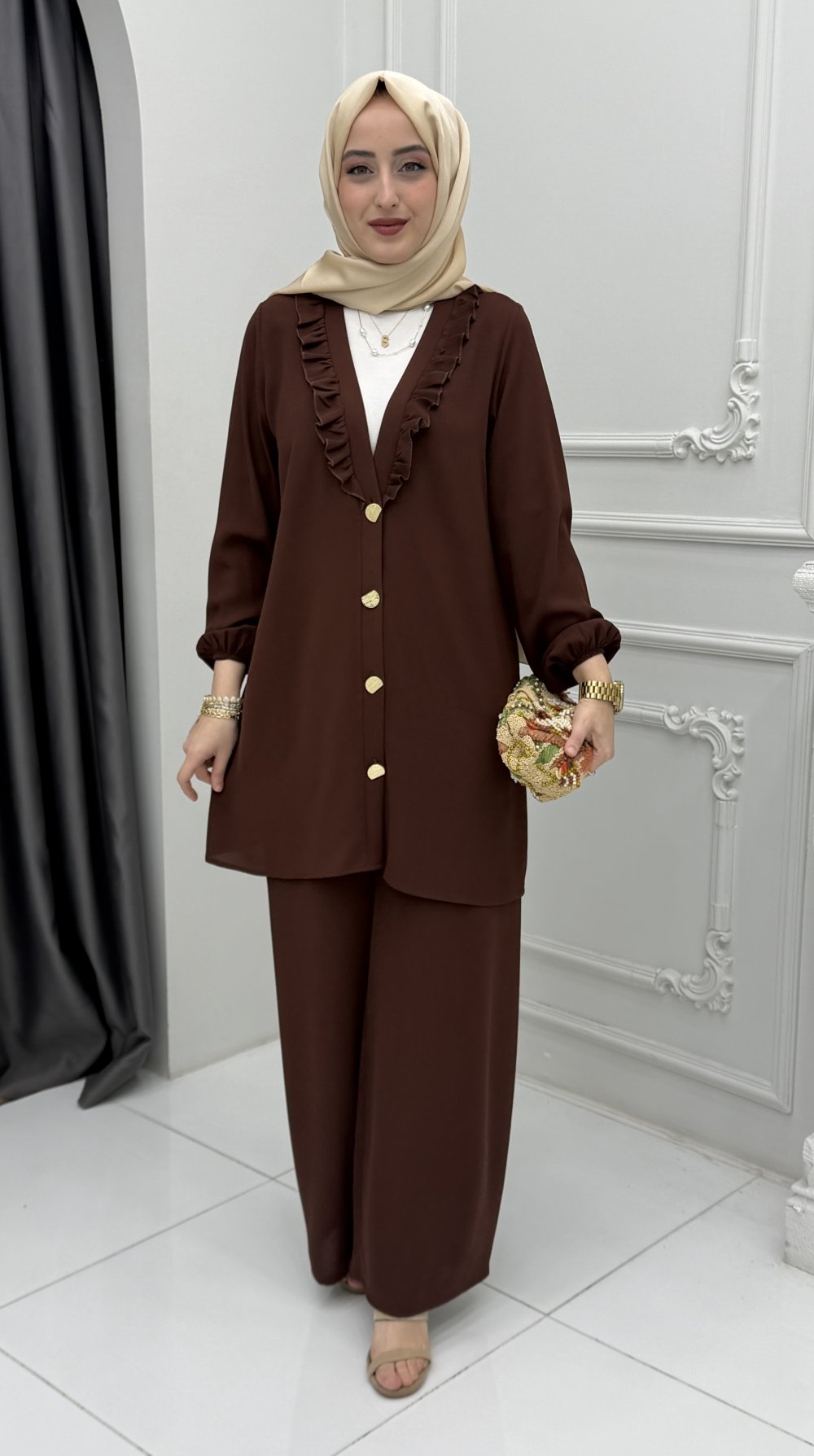 Rahatlık ve şıklığı bir araya getiren Sara Takım , sade ama zarif duruşuyla günlük kombinlerinizi güçlendiriyor. Yumuşak kumaşı ve esnek yapısı sayesinde gün boyu konfor sunarken, modern kesimiyle stil sahibi bir görünüm yaratır. rengin sofistike etkisi, her ortamda şıklığı yakalamanızı sağlar.