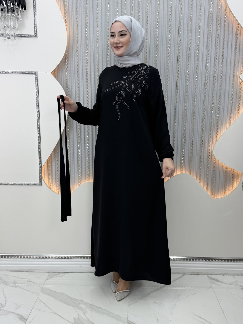 Tek omuz taş detaylıdır