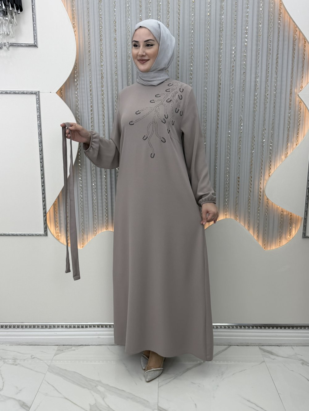 Tek omuz taş detaylıdır