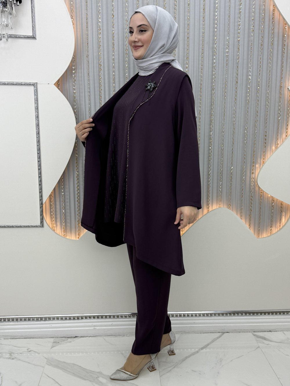 Şehnaz Pantolonlu Takım Mor