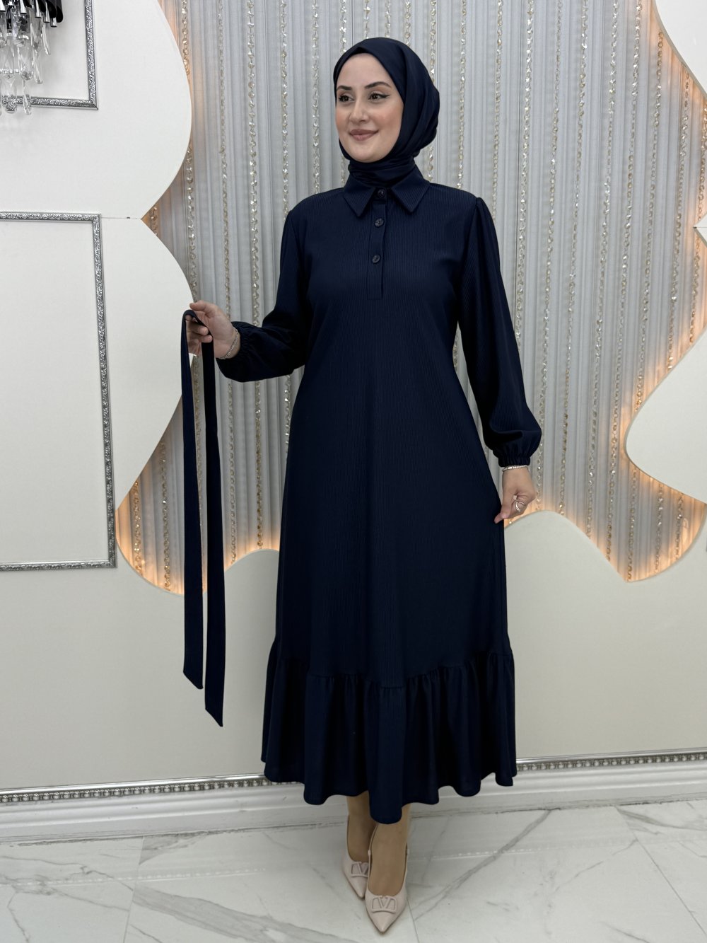 Bukre Tesettür Elbise Lacivert