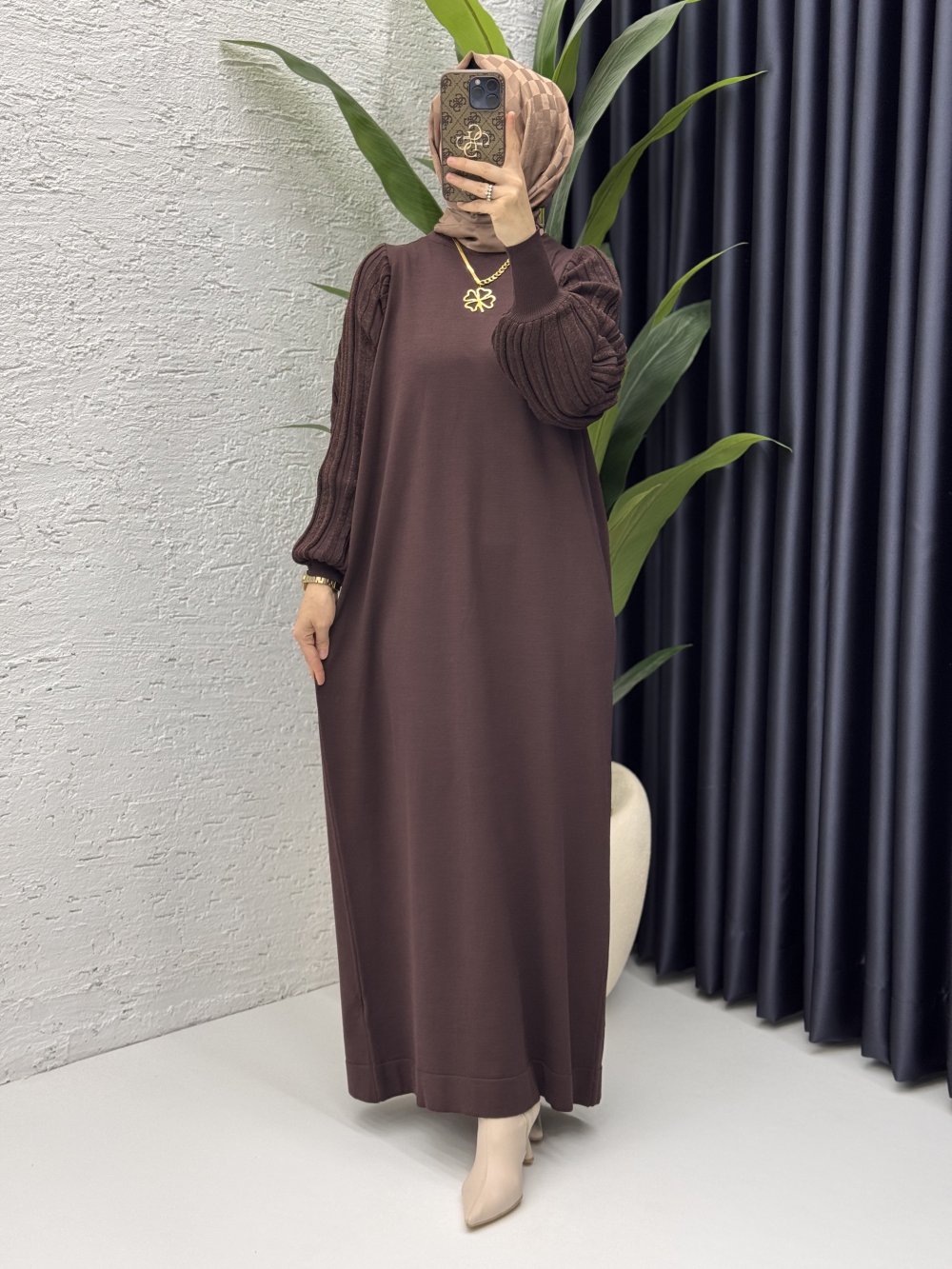 Simge Elbise Tesettür Giyim Kahverengi