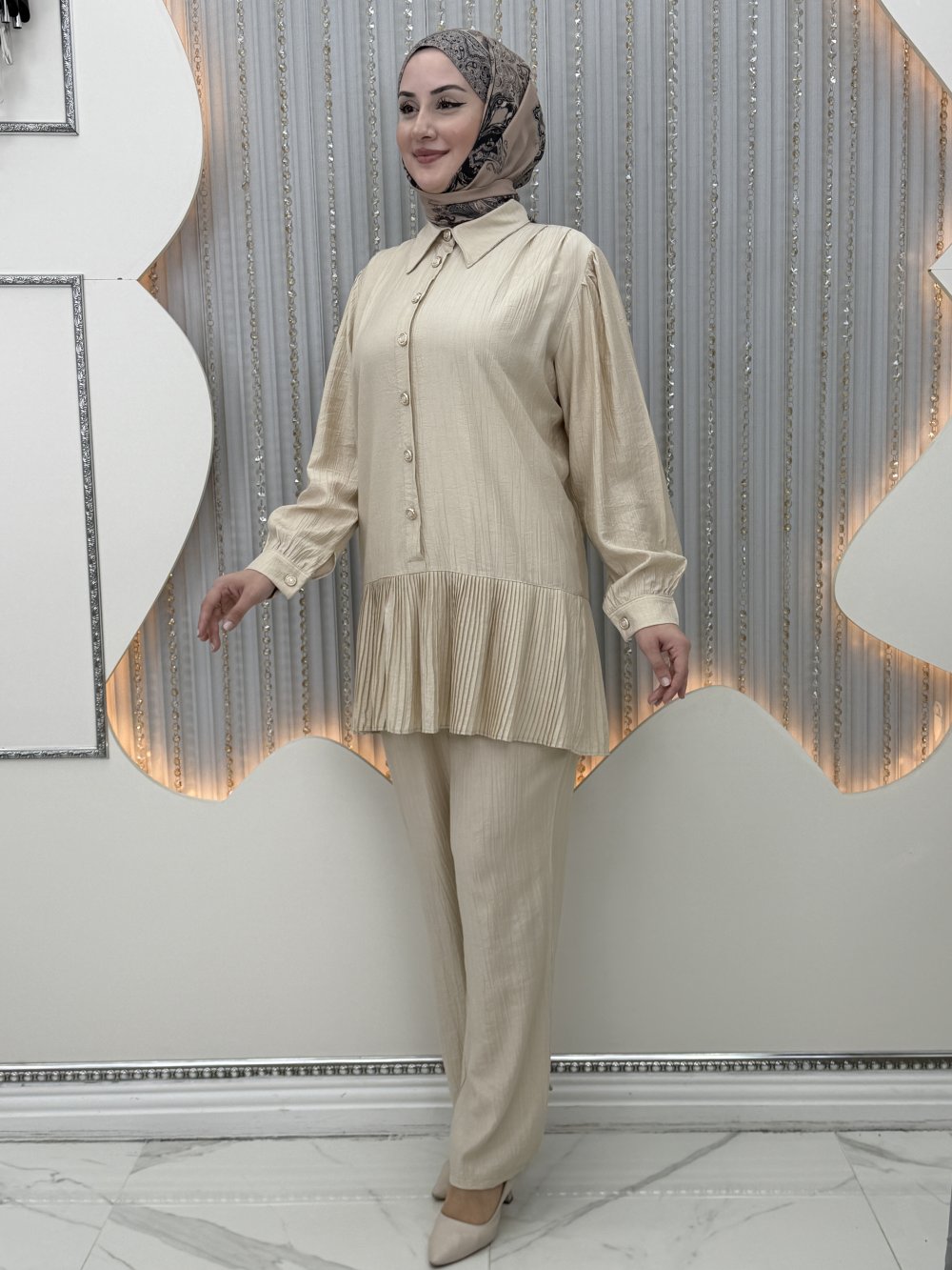 Suna Pantolonlu Takım Krem