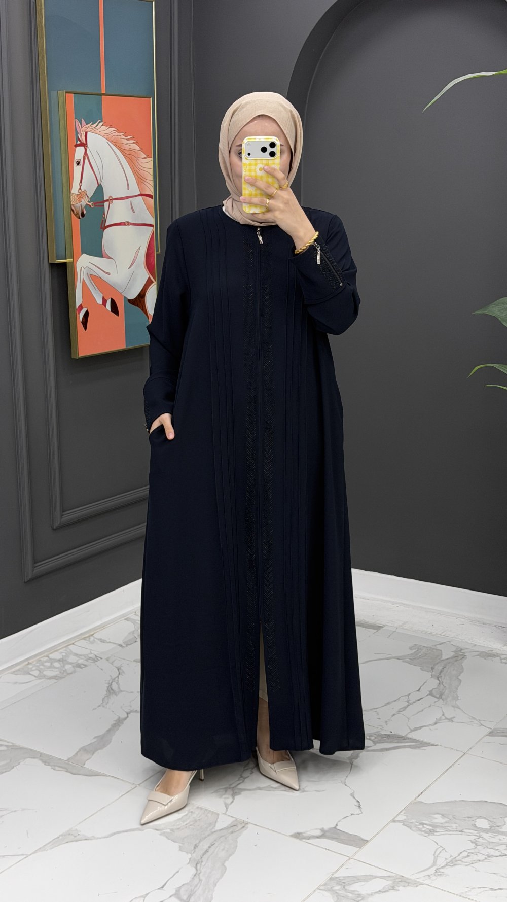 Taş Detaylı Tasarım Ferace-Lacivert