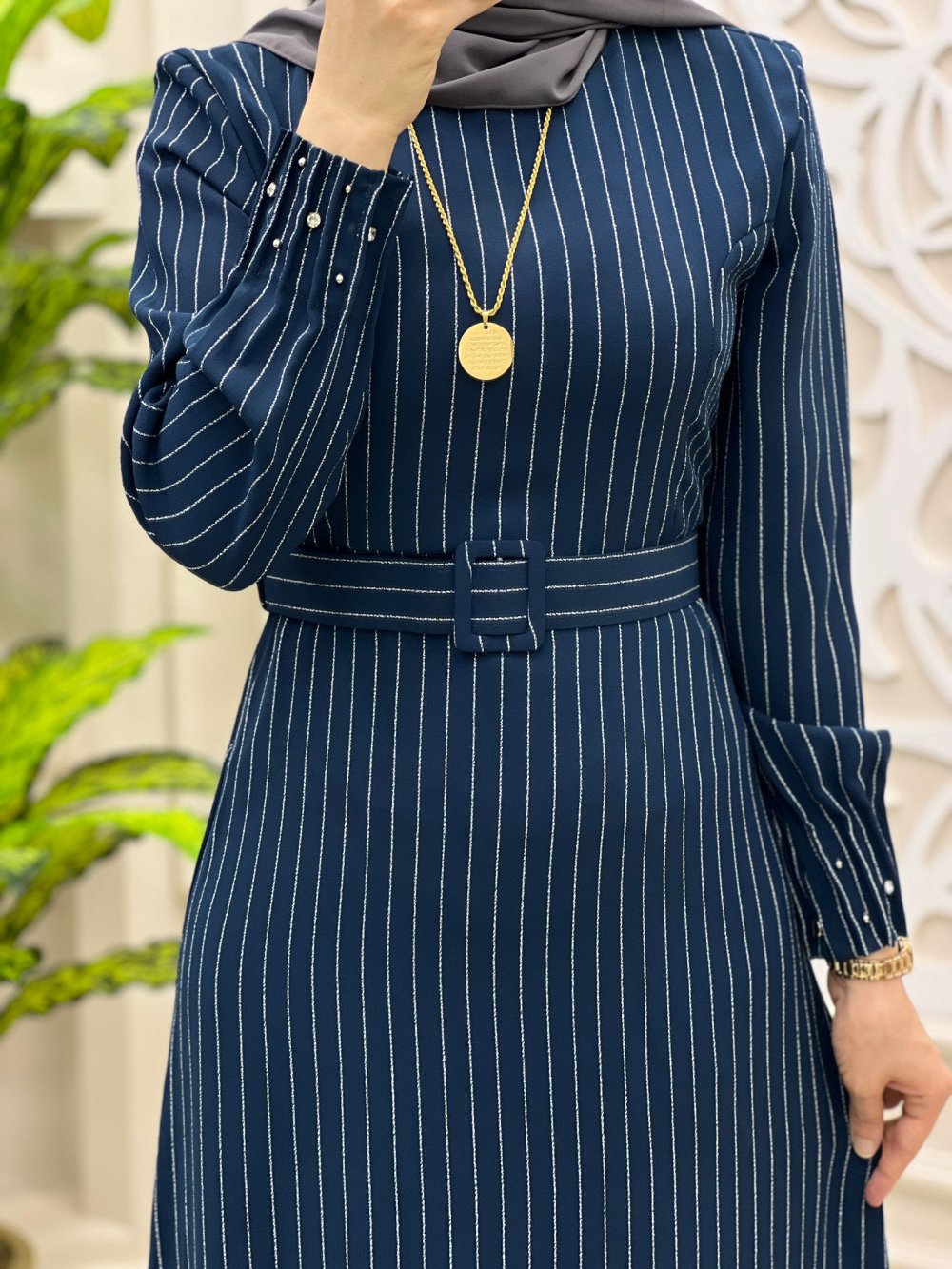 Tesettür Kuğu Elbise Petrol Mavisi