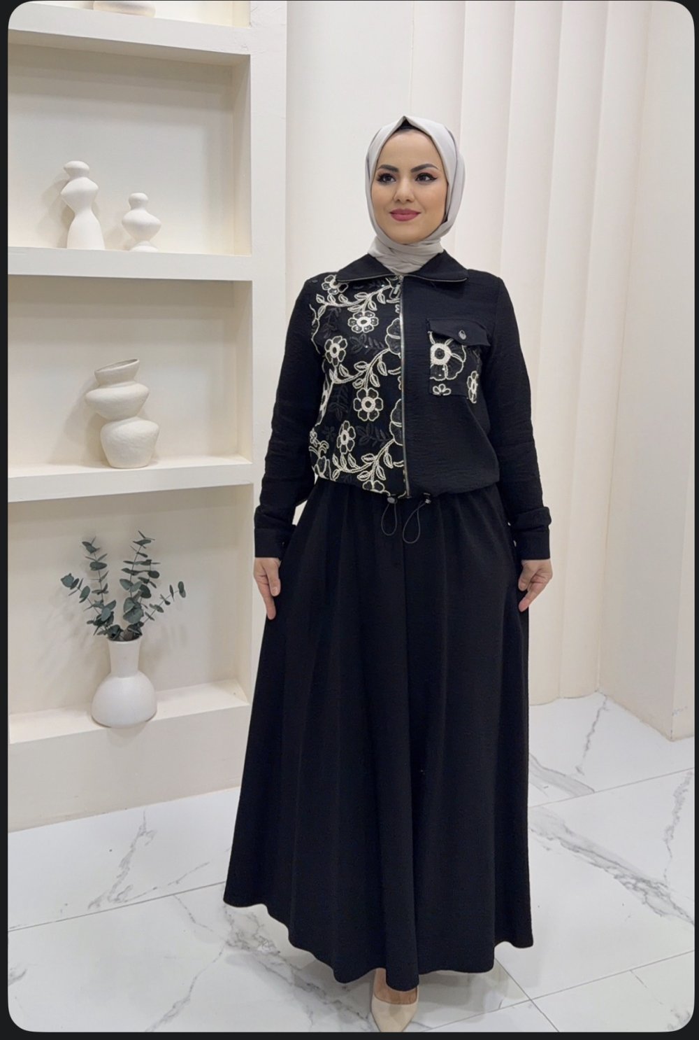 Tskım etekli Gülbeyaz Siyah