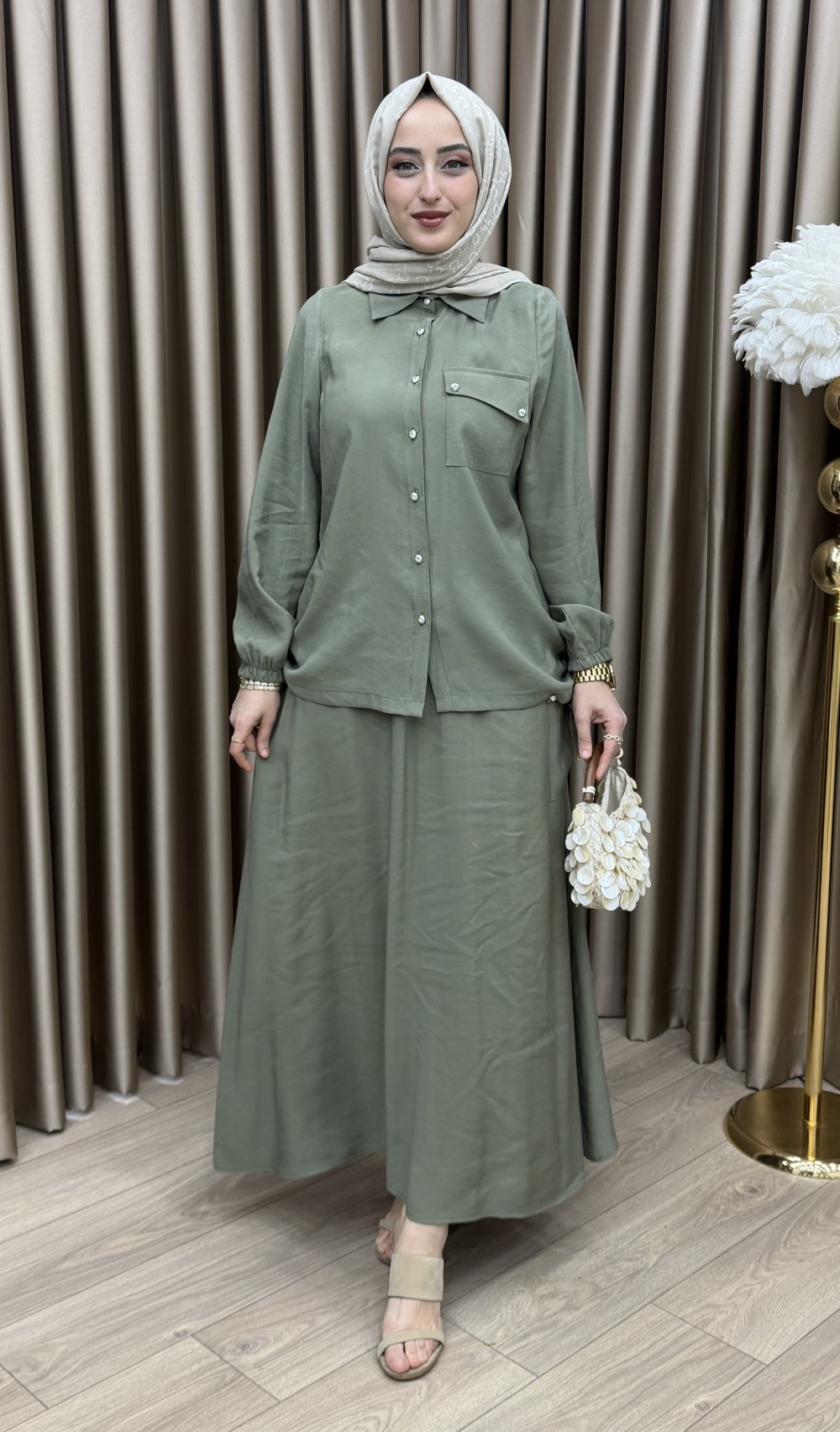 Verda Etek Takım,hem iş hem de günlük hayatınızda rahatlıkla tercih edebileceğiniz çok yönlü bir parçadır. Şıklığı konforla buluşturan bu tasarım, sezonun en gözde modellerinden biri olacak