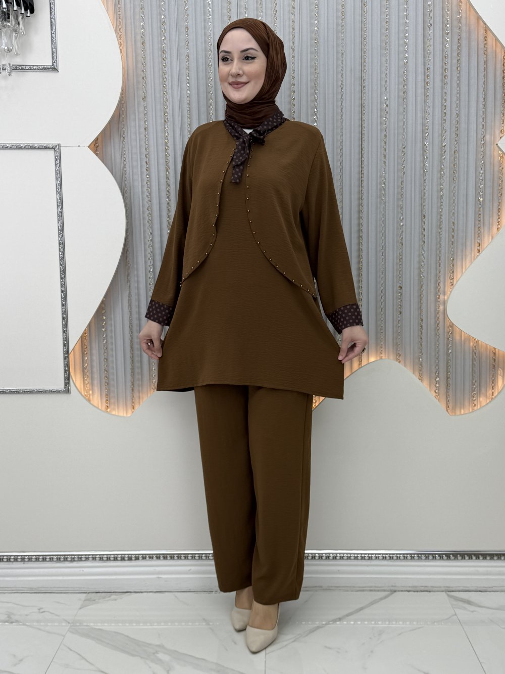 Vuslat Pantolonlu Takım Sütlü Kahve