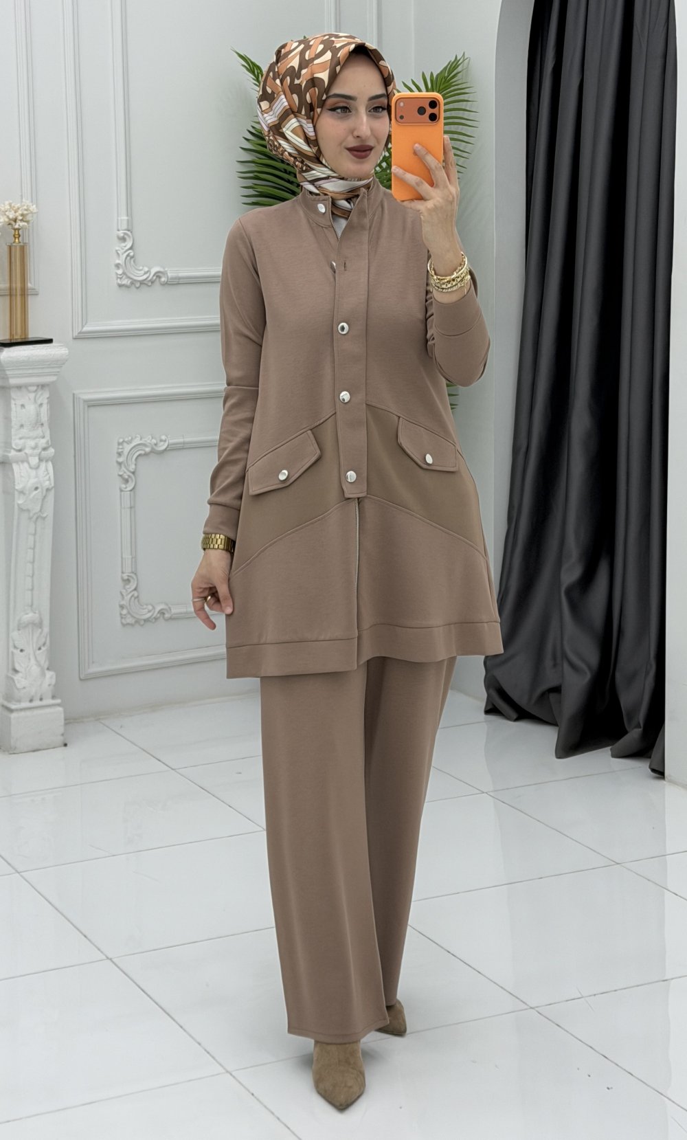 Rahatlık ve şıklığı bir araya getiren Yasemin Takım, sade ama zarif duruşuyla günlük kombinlerinizi güçlendiriyor. Yumuşak kumaşı ve esnek yapısı sayesinde gün boyu konfor sunarken, modern kesimiyle stil sahibi bir görünüm yaratır.