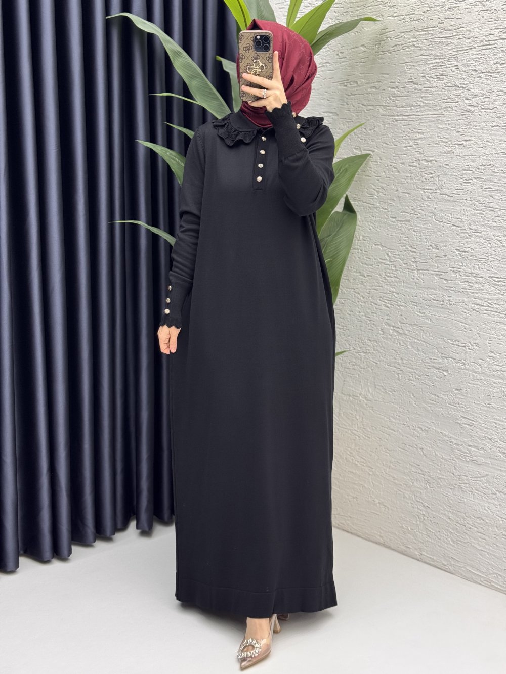 Yaka ve kol dantel detaylı hanım hanımcık Yasmin elbisemiz satışta