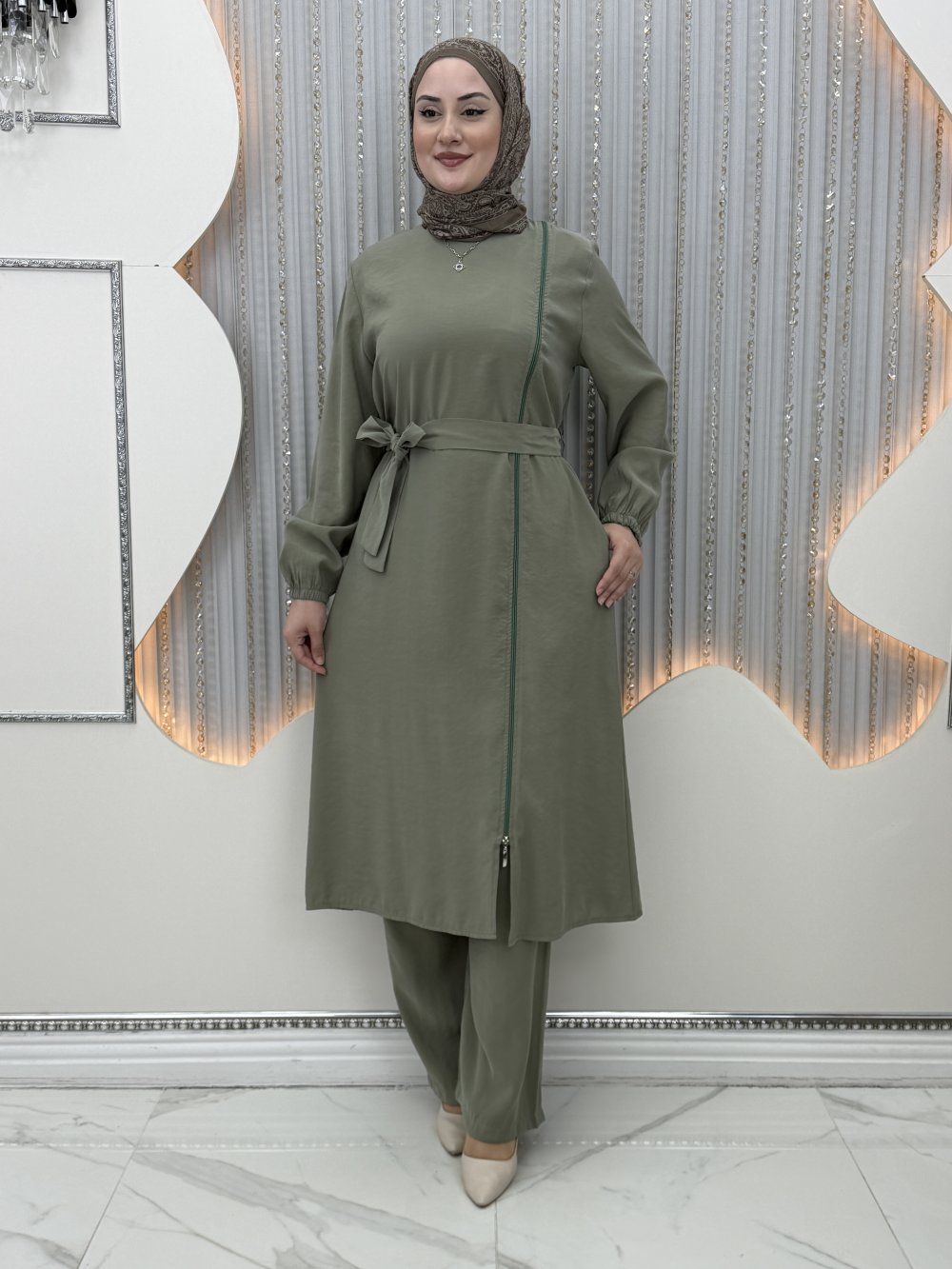 Tunik ön yandan boydan fermuarlı