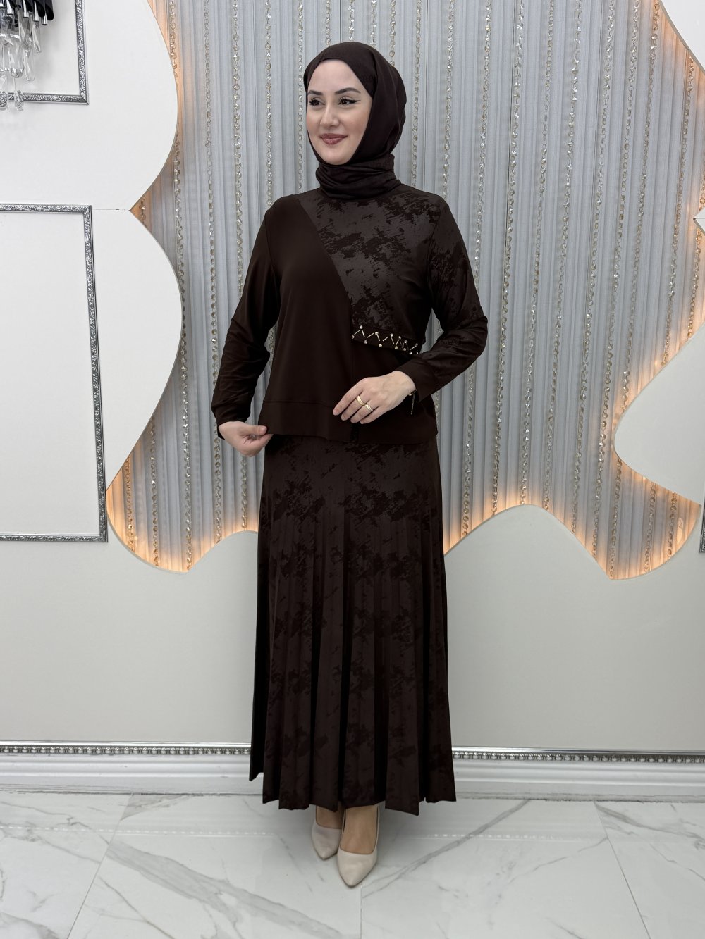 Zernişah Etekli Takım Kahverengi
